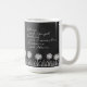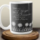 A fun coffee cup that would make a nice and heartwarming gift for a school teacher. It looks like a line of daisies are growing in the grass, drawn in chalk on a chalkboard. The phrase in the middle says; Tell me and I forget, Teach me and I remember, Involve me and I learn. But you can personalize this quote and change the words easily yourself! The quote is written in a pretty hand drawn cursive typography. This reads like a teacher's mission statement, and would also make a great gift for a college student in education learning to be a schoolteacher.