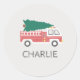 Chalk Classic Weihnachtsbaum auf einem Feuerwehrfa Runder Aufkleber