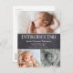 Feiern Sie und teilen Sie die Freude an der Ankunft Ihres Neugeborenen mit unserer "Introducing" Baby Birth Announcement Postcard. Diese Postkarte ist eine wunderbare Möglichkeit, die Geburt Ihres Kleinen zu verraten, als ein wertvoller Sake für diesen besonderen Moment in Ihrem Leben. Passen Sie diese Karte im vertikalen Format mit den Fotos, Geburtsdatum und Statistiken Ihres Babys an. Das Wort 'Einführung' wird in einem spielerischen Kreide-Schriftart geschrieben und fügt dem Design eine skurrile Touch hinzu. Dieses Feature erfasst das Wesen einer herzlichen und informellen Einführung Ihres neuen Familienmitglieds. Die Karte ermöglicht die Personalisierung jedes einzelnen Fotos, sodass jedes Detail Ihrer Ankündigung einzigartig und speziell ist. Geben Sie die Geburtsdaten Ihres Babys, den Namen, eine persönliche Begrüßung, Ihre Rücksendeadresse und die Namen der Eltern für eine vollständig maßgeschneiderte und unvergessliche Ankündigung ein.