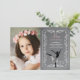 Ein trendiges Design mit einem Chalkboard-Hintergrund und einer Tanzballerina, gerahmt von einem weißen Vintagen blüh. Fügen Sie einfach das Foto Ihres kleinen Mädchens hinzu, um es zu Ihrem eigenen zu machen.Die Karte ist leicht anzupassen mit Ihrem Wortlaut, Schriftart, Schriftart Farbe und Auswahl von sechs Papiertypen.