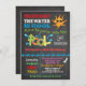 Chalkboard Birthday Pool Party Einladung Die Sonne ist heiß, das Wasser ist cool, Zeit zum Sprung in den Pool! Machen Sie sich mit der festlichen und farbenfrohen Pool-Party Einladung auf den Sommer gefasst! Das Wort "Pool" aus Poolspielzeug, Wasserspritzen und lustigen Kreide-Schriftart, eine schöne Sonne mit Sonnenbrillen auf einem Kreideboden. Ideal für eine Geburtstagsfeier für Mädchen oder Jungen. Handgezeichnete Illustration von McBooboos.