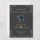 Diese Halloween-Party-Einladung strahlt ein Gefühl von unheimlicher Eleganz mit schwarzem Hintergrund und raffinierten goldenen Eckrahmen und Schrift aus. Der Kontrast zwischen der dunklen Kulisse und der glänzenden Goldakzente verleiht dem Set einen mysteriösen und luxuriösen Stil, der perfekt zu Halloween-Soirée passt. Im Mittelpunkt der Einladung steht eine Figur aus grimmigem Sensenmann, die eine Touch spukender Intrigen hinzufügt. Der Grim-Sensenmann, ein klassisches Halloween- und Übernatürliches Symbol, fügt dem Design ein entzückendes, aber fesselndes Element hinzu, das sich ideal für ein Halloween-Event eignet. Das Schwarz-Gold-Farbschema, zusammen mit dem Grim-Sensenmann-Motiv, schafft einen visuellen Reiz, der die Aufmerksamkeit der Empfänger erregt und die Stimmung für ein unvergessliches Halloween-Fest Set. Ob Sie ein kurioses Kostümball-Party oder einen eleganten Maskenball planen, diese Einladung Set die Bühne für eine Nacht der geheimnisvollen Romantik und Halloween-Spaß. Schicken Sie diese Einladungen an Ihre Gäste und laden sie ein, sich für eine Nacht der Zauberei und der Spannung zu begleiten, während Sie Halloween im Stil feiern.