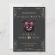 Mit diesem modernen Chalkboard-Halloween-Party laden wir Sie zu einem stilvollen und geselligen Fest ein. Die schwarze Tafel mit ihren Sets verleiht dem Chalkboard einen unheimlichen, aber dennoch raffinierten Ton. Die vier Ecken sind mit einem eleganten Scrollwork geschmückt, das eine charmante Touch verleiht. Der Goldtext kontrastiert wunderschön mit dem dunklen Hintergrund, sodass die Party-Details klar und auffällig sind. Im Mittelpunkt des Designs steht eine bezaubernde schwarze Jack-o'-Laterne, die dem traditionellen Halloween-Kürbis eine einzigartige Drehung verleiht. Diese niedliche Jack-o'-Laterne mit einem spielerisch rosa und schwarzen Bogen bringt einen frischen und modernen Flair in die klassische Halloween-Bilderwelt. Um den Kürbis herum flattern schwarze Fledermäuse und eine Streuung von schwarzen und rosafarbenen Sternen, die die festliche Atmosphäre mit einem Schuss whimsical Magie. Die Rückseite der Einladung setzt das elegante Chalkboard schwarz Thema fort und schafft ein zusammenhängendes und poliertes Design von vorne bis hinten. Diese Einladung eignet sich perfekt für ein Halloween-Party, das mit modernster Eleganz harmoniert und Ihre Gäste für eine Nacht mit festlichen Überraschungen und Halloween-Magie begeistert!