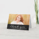 Trendy White Handwriting Script Rustic Abschluss Foto Danke Karte. Design von Elke Clarke © Besuchen Sie unseren Shop www.zazzle.com/monogramgallery* für weitere Farben und Stile. Fügen Sie Ihr eigenes Foto und Text hinzu. Ein einfaches, handgeschriebenes Skript-Schriftart-Textüberlagern auf einem schwarzen Chalkboard-Hintergrund (Printeffekt des Fotos) mit den Worten "Danke". Ersetzen Sie das Beispiel-Foto durch das eigene.