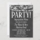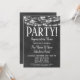 Eine unterhaltsame Schwarz-Weiß-Chalkboard-Party Einladung mit leuchtenden Lichtern ganz oben.