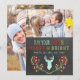 Happy Holidays Weihnachten personalisierbare Namen und Fotokarte in rustikalem Landchalkboard Muster mit Vintager Blumenbilderung, Reh mit Ankerern und handgeschriebenem Stiltext. Fügen Sie Ihren eigenen Text zu dieser Karte, um ein einzigartiges Weihnachtsfest Foto zu schaffen, das diese Feriensaison für Freunde und Familie begrüßt.