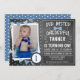 Suchen Sie eine Jungen-Chat zum ersten Geburtstag Einladung? Dieses Foto zum 1. Geburtstag lädt niedlich zu seiner ersten Geburtstagsfeier ein. Es verfügt über eine Bogen-Krawatte, bunte Fahnen und einige dekorative Elemente auf einem gescannten Chalkboard-Hintergrund. Das Foto Ihres kleinen Jungen erscheint in einem weißen Rahmen auf der links Seite des Designs. Die Einladung dieses Jungen zum Geburtstag ist personalisiert.