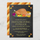 Freuen Sie sich auf diese elegante Erntedank-Potluck-Party Einladung mit schlichter Typografie und einem wunderschönen Truthahngericht vor einem Kalkboard-Hintergrund. Fügen Sie einfach Ihre Veranstaltungsdetails zu dieser einfach zu bedienenden Vorlage hinzu, um sie zu einer einmaligen Einladung zu machen. Dreh die Karte auf, um ein elegantes orangefarbenes Streifen-Muster auf der Kartenrückseite zu zeigen.