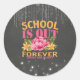Feiern Sie den Ruhestand des Lehrers mit diesem Chalkboard-Aufkleber mit den Worten "Schule ist für immer weg. Rosa und gelbe Akzente mit einer schönen rosa Blume, für einen freundlichen Aufkleber für den stolzen Lehrer, der in Rente geht. Benutzen Sie sie für Umschlag Aufkleber und um Gunst-Taschen zu machen.