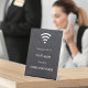 Eine Tafel mit Blick auf den Hintergrund. Ein Wi-Fi-Symbol. Fügen Sie Ihren Wi-Fi-Namen und Ihr Passwort für Ihre Kunden/Gäste hinzu. Weißer Text.