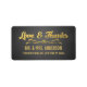 Chalkboard mit Gold Script Hochzeit Vielen Dank, dass Sie die Adresse Label zurückgeben. Design von Elke Clarke© für MonogramGallery, gedruckt von Zazzle. Schicken Sie Ihre Hochzeitskarten an Ihre Freunde und Verwandten, indem Sie dieses schöne, einfache Etikett mit den Worten "Liebe und Dank" in einem goldenen Text-Overlay für Kalligraphie-Schriften verwenden. Sie können mit Ihren verheirateten Namen personalisieren. Foto-Effekt aus schwarzem Chalkboard-Hintergrund und Goldfolie. Andere Farben sind verfügbar.