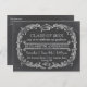 Einladung zur modernen Graduation Party. Chalk gezeichnet Graduationskappen, Efeu, Schriftrollen und Banner zieren diese Tafel im Klassenzimmer. Ideal für eine Abschlussfeier oder ein offenes Haus. Vorder- und Rückseite dekoriert. Sehen Sie bitte in meinem Geschäft nach. Original Illustration von pj_design.com.