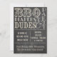 Vintager Text auf einer schwarzen Tafel - GRILLEN, Windeln und Typ Party für erwartete Väter. Lass dem neuen Vater, dass er seine eigene Babydusche haben soll.