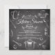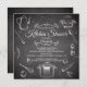 Stock The Kitchen Bridal Dusche Einladung mit gezeichneten Küchenwerkzeugen inklusive einem Topf, Whisk, rollendes Button, Spatula, Pfeffermühle, Colander & Holzlöffel & Kaffeekanne Set auf einem beliebten schwarzen Chalkboard Hintergrund. Dreh oder lagere das Brautparty über, um einen passenden Rücken für eine besondere Touch zu sehen.