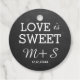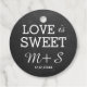 Liebe ist süße Gunst Aufkleber perfekt für Ihre Gastgeschenke Hochzeiten. Personalisieren Sie die rustikalen Chalkboard-Aufkleber mit Braut- und Bräutigamen und Hochzeitstag.