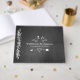 Vintager Stil Chalkboard sehen Hochzeitsgast-Buch mit Grafiken von weißen Liebesvögeln, Pfeil und Herz und Blume Garland. Personalisieren Sie die weißen Textfelder für Ihren besonderen Tag.