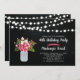 Feiern Sie Ihren besonderen Tag mit dieser stilvollen Geburtstagseinladung. Dieses Design bietet Saitenleuchten, Mason-Glas und Blume-Bouquet mit Chalkboard-Hintergrund.