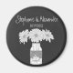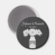 Ein beliebter Hochzeitsmagnet im Chalkboard-Stil ist die wirbelnde Scrollrolle mit Herzrandstreifen und die originelle Abbildung eines modischen Maurerkirsches mit weißen ChrysanthemumBlume und einem mit den Initialen der Braut und des Bräutigams personalisierten Herz, das einen Kreideeffekt verleiht. Whimsikale Typografie verleiht dem Magneten einen lässig eleganten Look. Es stehen auch Koordinierungsaufgaben zur Verfügung. Einige Grafiken von clipartSingles im Store etsy.com