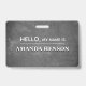 Modernes und stilvolles Namensschild - Mein Name ist. Personalisieren Sie das Tag mit Ihrem Namen. Der Text ist in weißer Farbe. Der Hintergrund ist eine trendige graue Tafel. Ideal für große Ansammlungen und Veranstaltungen.