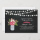 Eine stilvolle rustikale Polterabend-Einladung mit Mason-Glas & Blume auf einem Kalkboard-Hintergrund.