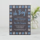 Chalkboard Paw Prints Blue Boy Baby Dusche Einladung