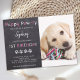 Welpe Pawty! Hosten Sie Ihren Geburtstag von Welpen oder Hunden mit dieser einfachen rustikalen Schiefertafel und Pfotenprint Einladungskarte. Fügen Sie Ihr Lieblings-Foto hinzu und personalisieren Sie mit dem Namen, dem Geburtstag des Geburtstags und allen Infos zur Geburtstagsfeier des Welpen! Dieses einfache rustikale Chalkboard-Design ist perfekt für Ihre Hunde Geburtstagsparty. COPYRIGHT © 2020 Judy Burrows, Black Dog Art - Alle Rechte vorbehalten. Chalkboard Pawty Welpe Hund Einladung Geburtstag