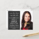 Die Chalkboard-Bilder sind beliebt, und dieses ist einfach, aber elegant. Ihr Foto (Schwarz/Weiß oder Farbe) ist auf der rechten Seite, mit Ihrem eigenen Text und einem hübschen Chalkboard-Emblem auf dem links. Auf der Rückseite der Karte befindet sich bei Bedarf ein zusätzliches Textfeld. Der gesamte Text, vorne und hinten, ist leicht anpassbar.