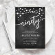 90. Geburtstagsfeier Einladung. Elegantes Schwarz-Weiß-Design mit Chalkboard-Muster. Moderne Einladungskarte mit Feenzeichenketten und Script-Schriftart. Ideal für eine stilvolle Feier am neunzigsten Tag. Personalisieren Sie Ihre persönlichen Daten. Kann für jedes Alter angepasst werden! Gedruckte Zazzle Einladungen oder Sofortdownload digitalen druckbaren Vorlage.