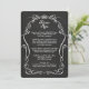 COLOR PALETTE: Das ist eine Schwarzweiß-Design-DESIGN-SAMMLUNG: Dies ist ein passendes formales Empfang- oder anderes Event Dinner-Menü in einer handgefertigten, kalligraphischen Linie, die den Scrollwirbelrahmen zeichne. Für einen modernen typografischen Flair wird ein kalligrafischer Text in einem handgeschriebenen Schriftart und ein "und" mit wirbelnden Schriftrollen hinzugefügt. Erstellt von Audrey Jeanne Roberts, Grafikdesignerin für diese Sammlung. Der Hintergrund ist ein eigentliches Chalkboard-Bild und auf der Rückseite ist das handgeschriebene Wort "und" zusammen mit Ihren mit Monogramm Initialen. Ideal für ein unterhaltsames, lässigeres Paar, das ein wenig skurrile, niedliche, rustikale Outdoor Hochzeitsthema oder Bauernhaus im Stallstil genießt.