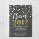 Graduation Party Einladung individuelle Foto-Karte Klasse von 2017 in Silber, Weiß und Gold Konfetti Muster mit rustikalem Chalkboard Hintergrund und handgeschriebenen Stil Text.