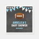 Schöne moderne FOOTBALL Babydusche Einwegservietten aus Imitat mit Chalkboard-Hintergrund und Bunt-Fahnen in Weiß und Blau. Fußball in der Mitte - perfekt für diese sportliche Themenparty. Personalisieren Sie sie, indem Sie den Namen und das Optionsdatum Ihrer Mutter hinzufügen. Siehe Sammlung