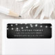 Elegante und helle Rücksendeadressen-Aufkleber mit rustikalem Chalkboard-Hintergrund mit weißer Schrift und Saiten mit leuchtenden weißen Märchenleuchten.