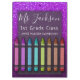 Lila Imitate Glitzer Glitzern hinter einer Reihe von bunten Stiften in einem Regenbogenmuster. Aktualisieren Sie einfach den Namen, die Klassenbeschreibung und den Schulnamen auf Vorder- und Rückseite. Chalkboard-Skripte und Schriftart werden verwendet, um das Klassenzimmer eines Lehrers nachzuahmen. Erhältlich in vielen anderen funkelnd Farben.