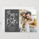 Brush Calligraphy Foto Rette unsere Date Card | Melden Sie sich mit dieser individuell anpassbaren Save the Date flachen Karte bei Familie und Freunden an. Es zeichnet sich durch handgeschriebene moderne Kalligraphie aus. Dieses stilvolle Foto Save the Date ist perfekt für jede Hochzeitszeit und jedes Thema. Weitere Farben und passende Elemente sind verfügbar.
