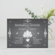 Die beliebte Party Einladung für Hochzeitsessen in der Probe mit Chalkboard-Stil wird durch eine reizende, wirbelnde Scrollbrücke umrissen und vermittelt einen Kreideeffekt. Die originelle Illustration einer rustikalen Masonjar mit Hydrangea-Blume-Bouquet ist mit einem weißen Herz versehen, das die Initialen des Ehepaares auf den Rücken hält. Whimsical Typografie verleiht dieser Probe ein lustiges, modernes und lässiges Ambiente. Auch die Koordinierungsaufgaben sind verfügbar.