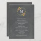 Eine Einladung zur Probe der Hochzeit im Herbst mit einer monogramm-Einladung, die eine Darstellung der orangen und gelben Blumen und des Grün im Kreis oben enthält. Personalisieren Sie sich mit Ihrem anfänglichen inneren Kreis. Personalisieren Sie den Text mit Einzelheiten Ihrer Veranstaltung. Hintergrund ist Kalkboard inspiriert.