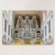 A beautifully detailed jigsaw puzzle featuring the magnificent pipe organ of St. Mauritius, Hildesheim. This image captures soaring baroque architecture, delicate woodcarving and gleaming pipes in a warm, atmospheric light.