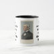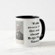 Weiße Kaffeetasse/Tasse mit schwarzem Interieur und Farbporträt von Ralph Waldo Emerson und seinem Zitat: "Fiktion offenbart die Wahrheit, dass die Realität verschleiert."