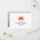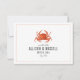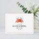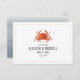 Eine rustikale nautische Hochzeit speichern das Datum mit einer Abbildung einer roten Krabbe mit grauem Text und verblassten roten pinstripe vorne. Die Rückseite ist mit Aquarellfarben inspiriert.