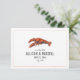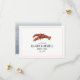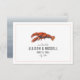 Eine rustikale nautische Hochzeit speichert das Datum mit einer Abbildung eines roten Hummers mit grauem Text und verblasstem roten pinstripe vorne. Die Rückseite ist mit Aquarellfarben inspiriert.