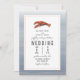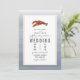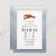 Eine Hochzeitseinladung mit einem Aquarell inspirierte Chambray-Farbdesign auf Vorder- und Rückseite. Vorderseite zeigt die Darstellung eines Hummers. Personalisieren Sie den grauen Text.
