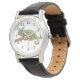Eine Aquarellfarbe eines farbenfrohen Chameleon schmückt diese lustige Uhr!