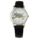 Uhr, Klassische Damenuhr mit schwarzen Lederarmband