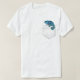 Ein blauer Panther Chameleon sitzt auf der Hosentasche des T - Shirt. Ein perfektes Shirt für diejenigen, die mit Kindern arbeiten.