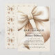 Celebrate the upcoming arrival of your little one with this elegant baby shower invitation. Featuring a beautiful watercolor illustration of a champagne-colored bow, this design exudes a sense of gentle sophistication. The soft, neutral color palette makes it perfect for welcoming both baby boys and girls. The back of the card features a charming repeating pattern of bows and a convenient QR code for easy RSVPs. This invitation is perfect for a mom-to-be who appreciates classic and refined style for her special day.