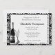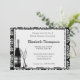 Elegante Bridal Dusche Einladung mit einer Flasche Champagner und Gläser. Hintergrund ist ein elegantes Schwarz-Weiß-Muster. Passen Sie Ihre Duschinformationen an.