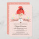 Eine süße Braut mit rotem Haar und feiner Haut hält eine Flasche Champagner in der Hand, um ihre kommenden Nuptials zu feiern. Sie trägt ein weißes Kleid mit einem schwarzen Schnürsenkel und ihr Haar ist in einem Top-Bun mit einem schwarzen Band in einem Bogen gebunden. Diese Champagner- und Brunch-Einladungen eignen sich perfekt für ein Brunch und ein Brautparty mit Whirlpool. Sie umgab von Champagnerbläschen und einem pinkfarbenen und weißen Polka-Punkt-Hintergrund. Gelbe und blaue Rose floral betont das rosa Band Banner Design. Ein Polka Herz Hintergrund auf der Rückseite. Artwork © Chrissy H. Studios, LLC. Alle Rechte vorbehalten.