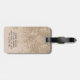 Modernes, gürtelhaftes, stilvolles und elegantes Monogramm Gepäckstück. Das Design verfügt über den ersten und ersten Namen in einem eleganten, handgeschriebenen Drehbuch auf einem Champagner funkelnd Imitat Glitzer Hintergrund und Ihre Kontaktdaten auf der Rückseite.