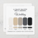 Each palette includes clearly labeled hex color codes to help coordinate wedding invitations, stationery, signage, florals, table décor, and bridal party outfits with ease.