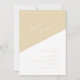 Feiern Sie mit Eleganz mit unserem Champagner Gold und Ivory Geometric Bridal Dusche Einladung. Dieses atemberaubende Design besticht durch einen gewagten geometrischen Hintergrund in elegantem Champagnergold und knalligem Weiß. Freuen Sie sich auf einen eleganten und luxuriösen Rahmen für Ihre Veranstaltung. Der "Brautparty"-Satz ist elegant in Elfenbeinschrift auf einem auffallenden diagonalen Champagnergoldhintergrund geschrieben, was eine Touch von klassischem Charme verleiht. Passen Sie diese Einladung einfach an, indem Sie personalisierte Details wie den Namen, das Datum, den Ort und die UAWG der Braut eingeben. Diese Details werden in einer Elfenbeinrahmen-Linie präsentiert, mit passender Champagner Gold Sans Serif und Serif Typografie vor einem fett diagonal weißen Hintergrund. Dieses Design verbindet zeitgenössischen Stil mit zeitloser Eleganz und ist somit die perfekte Wahl für ein elegantes und unvergessliches Brautparty.